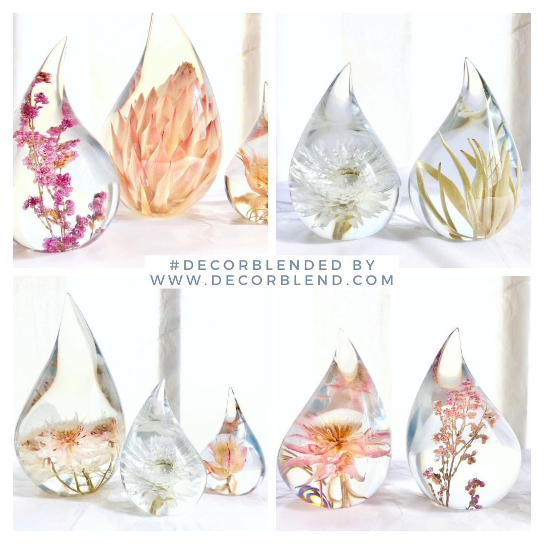 Plants are sustainably gathered by hand from private farms and wild places in the western cape. Now based in the Karoo , each is lovingly handmade , unique and seasonal , celebrating the biodiversity and magic microcosm of indigenous fynbos . The original shapes are sculpted by the artist, they are cast in moulds at night in our remote studio and go through an intensive sanding and polishing process , perfecting the clarity and magnification of each specimen , bringing nature to your home.